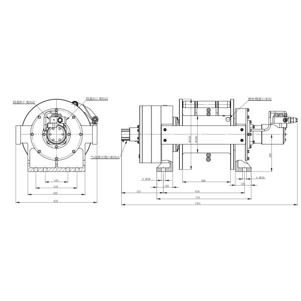 The hydraulic drive winch transforms the hydraulic energy into mechanical energy obtained by the hydraulic motor through the hydraulic system, decelerates and increases the torsion through the planetary reducer, produces a great torque on the drum, and drag heavy objects by winding the steel wire rope on the drum.
